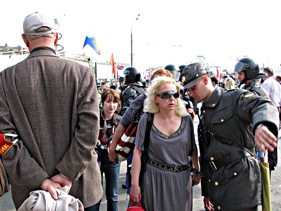 Mit sehr hohem Polizeiaufwand wurde der angekündigte und genehmigte Demonstrationszug des "Hetrogenen Protestes" vom Marsch zum Regierungssitz des Präsidenten Putin vor seiner Introhnisation abgehalten. Die Staatsordnung in Russland, sowie die Sicherheit auf den Straßen wird mit hohem Aufwand gerade an solchen Tagen, an denen viele ausländische Staatsgäste erwartet werden, enorm wichtig genommen und aufwändig durchgeführt. Das Kräfteverhältnis zwischen Ordnungshüter und Demonstranten wurde auf 1:1 eingeschätzt, später standen sich 8-9.000 Demonstranten 14-15.000 Polizeikräften und Sondereinsatzkommandos gegenüber. Ungefähr 4 Stunden dauerte der Aufmarsch. Es kam zu kleinen und heftigen Ausschreitungen, von denen sogar in Deutschland gemeldet wurde.