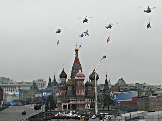 Gut einsehen konnte man vom Fenster des Hotel Baltschug Kempinski die vom "Roten Platz" abmarschierenden Truppen, beziehungsweise abfahrenden Militärfahrzeuge. Allerdings mussten die Fenster zur Straßenseite hin geschlossen gehalten werden, so hoch war die Sicherheitsstufe für die umliegenden Gebäude einzuhalten. Die Qualität der Bilder ist natürlich dadurch etwas dürftiger als sonst. Mit direktem Fernsehkontakt war der "Rote Platz" mit der weltweit ausgestrahlten einmaligen Zeremonie quasi mit allen Wohnzimmern nicht nur in Russland verbunden. Eine gewaltige Demonstration der Stärke, auch für den für 6 Jahre wiedergewählten Präsidenten Vladimir Putin. Alt-Kanzler Gerhard Schröder zählte zu den 3.000 geladenen Gästen.
