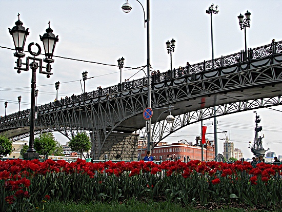 Die Christi-Erlöser-Brücke mit der Statue "Peter des Großen" auf seinem Segelschiff.