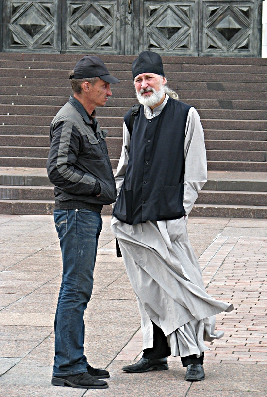 Zwei russisch orthodoxe Glaubensbrüder beim Gespräch ...