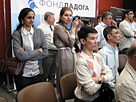Fide-Präsident Kirsan Illyumzhinov immer in Sachen Geschäfte unterwegs - die junge Dame scheint am Spiel Gelfand vs Anand mehr interessiert zu sein