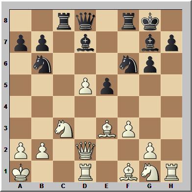 18...Da5 19.Sxe4 Dxd2 20.Sxf6+ Txf6 21.Txd2 Tf5 22.Lxg7 Kxg7 23.d6 Für den Minusbauern hat Schwarz Entwicklungsvorsprung bzw. die aktiveren Figuren. Aber reicht das?