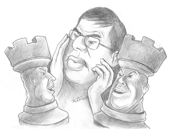 TopTurniere Die zwei (schwarzen) Türme Karikatur zur dritten WM-Partie von Fränk Stiefel