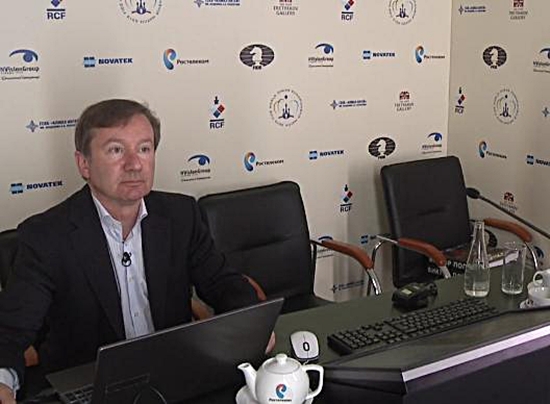 17.Sxd4 Den Bauern holt sich Schwarz bald zurück. 17...Tc8 18.Db1 h6 19.Sf5 Lxf5 20.Lxf5 Tc5 21.Tfe1 Txd5 Weiß besitzt das Läuferpaar, was ihm einen minimalen Vorteil sichert, doch wie Gelfand in der Pressekonferenz selbst sagte, sind seine Figuren nicht optimal postiert, weshalb sich daraus kaum einen Nutzen ziehen lässt.
