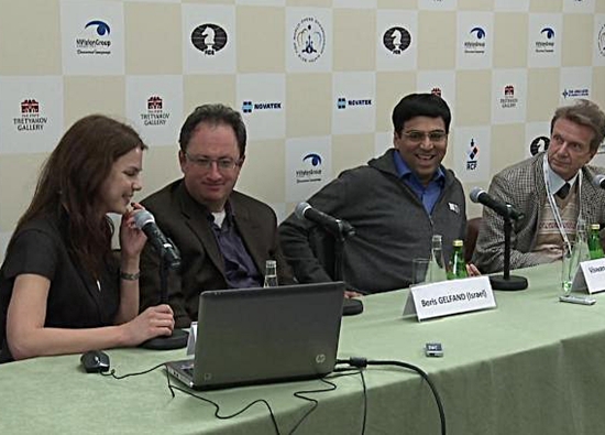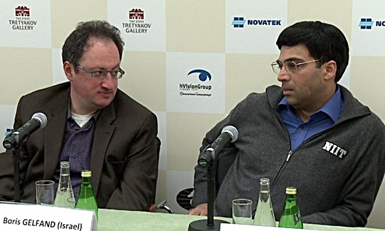 Boris Gelfand (2727) vs. V. Anand (2791) WM 2012, Moskau - Partie 4 (D45 - Slawisch)