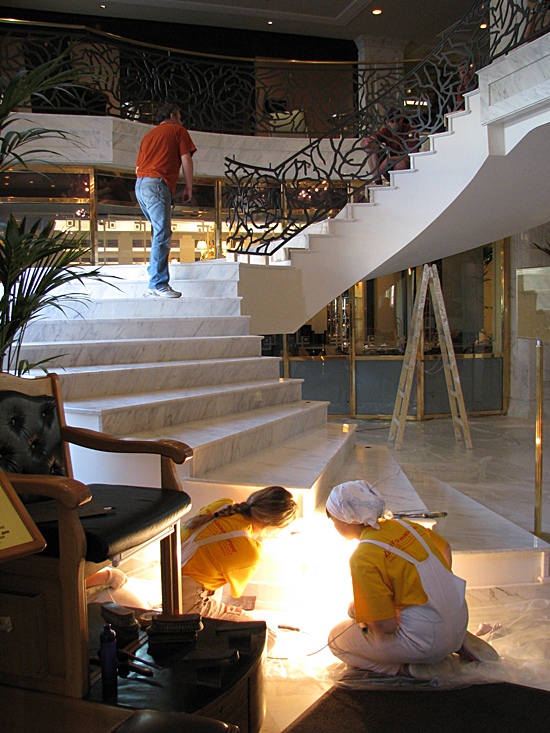 Die Aufgangstreppe in der Lobby wird bald fertig sein.