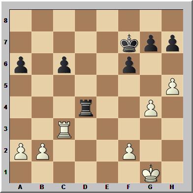 24.Txd8+ Txd8 25.Dxc6 bxc6 26.Te1 Kf7 27.g4 Ld4 28.Tc1 Lxc3 29.Txc3 Td4 Mit Remisangebot, welches akzeptiert wurde.½-½