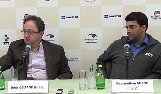 Boris Gelfand (2727) vs. V. Anand (2791) WM 2012, Moskau - Partie 6 (D45 - Slawisch)