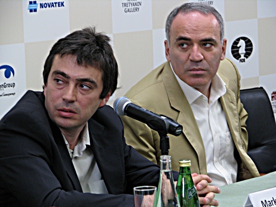 TopTurniere Kasparov, Grischuk & Werndl in Moskau aktiv Garry Kasparov in der Pressekonferenz, Alexander Grischuk gegen Roboter KUKA, Jan Werndl mit dem Thema Schachfan in der << Die Zeit >> Online