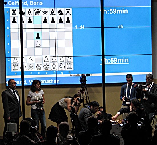 Zuerst zeigte die Live-Übertragung im Spielsaal, dass Viswanathan Anand Weiß hat