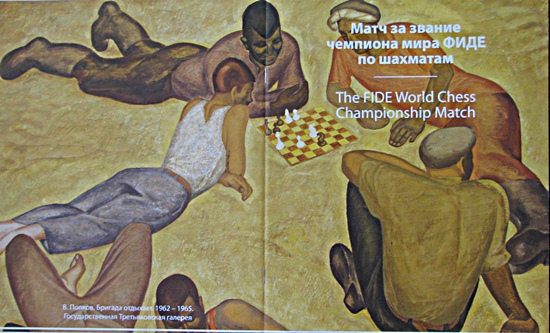 Die Weltmeisterschaft in Moskau ist auch optisch sehr gut gestaltet. Entsprechend der Ansprüche der Tretjakov-Galerie war hier ein Künstler am Werk, der Unverwechselbarkeit als hohes Ziel umgestzt hatte.