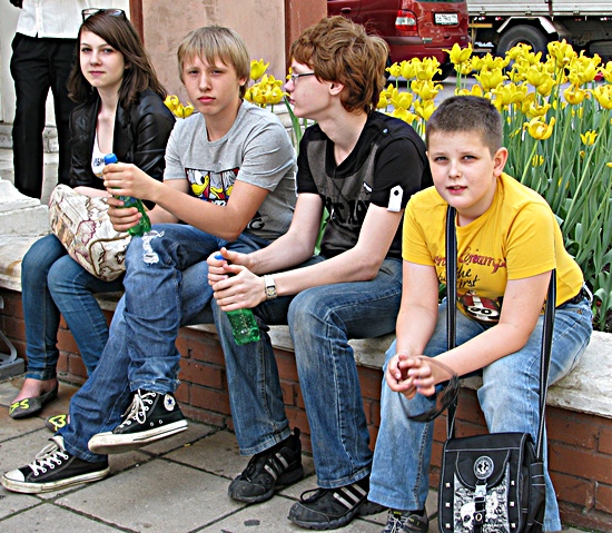 Die Kinder warteten geduldig auf die Spieler am Nebeneingang ...