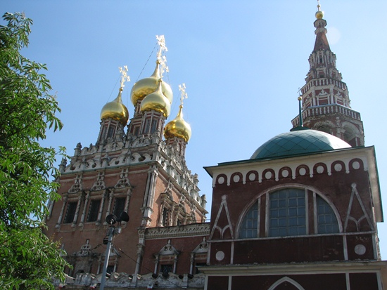 Um 14:35 Uhr startet der Mercedes inklusive "Security" am Baltschug mit Anand und Aruna, Eric van Reem "betreut" die Abreise der 5 bis 15 Minuten-Fahrt, meine Aufgabe ist es, die Ankunft in der Tretjakov-Galerie bis in den Spielsaal zu "betreuen". Immer das gleiche Ritual, aber mit anderen Nuancen. Auf dem Fußweg zu meinem bekannten Einsatzort, nahm ich einen völlig neuen und wilden Weg, weil ich fühlte, dass die Veränderungen in der Strategie des A-Teams ganzheitlich unterstützt werden mussten. Dabei machte ich drei Fotos, die mich sicher machten, dass etwas Ungewöhnliches passieren wird. Das erste Bild zeigt diese Kirche, halb im Häuserdschungel versteckt, abgesperrt und kaum hinzukommen, aber ich konnte über den Zaun fotografieren.