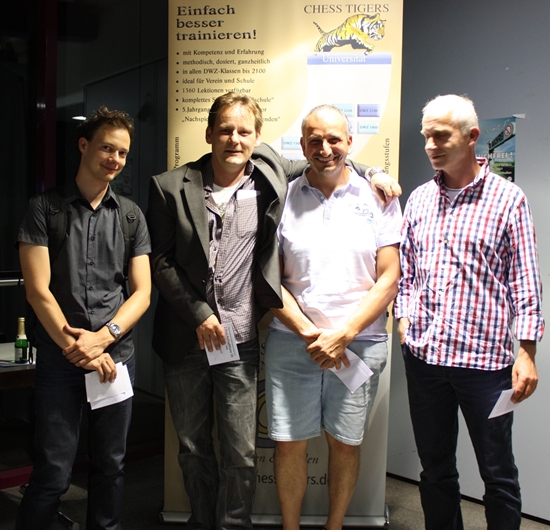 Die Team-Kapitäne der besten vier Teams - es gewann übrigens der SC König Nied mit Oliver Uwira (5,5), Daniel Prenzler (5,0), Mike Rosa /4,5) und Walter Gräbner (4,0)