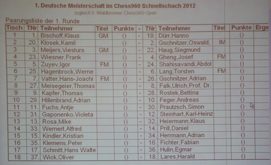 Endstand 1. Deutsche Meisterschaft im Chess960 Schnellschach