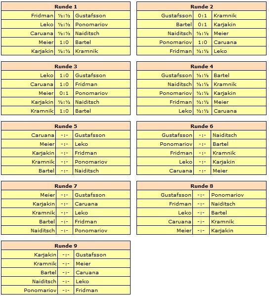 Die Bedenkzeit beträgt 100 Minuten/40 Züge + 50 Minuten/20 Züge + 15 Minuten + 30 Sekunden/Zug ab dem ersten Zug.