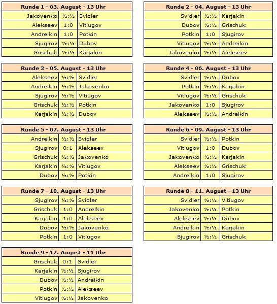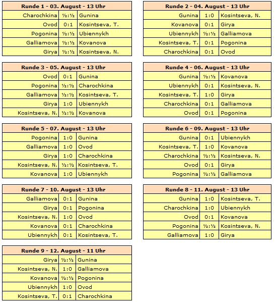 Das 65. Russische Superfinale der Männer und das 62. der Frauen fand vom 03. Juli bis 12. August in Moskau statt.