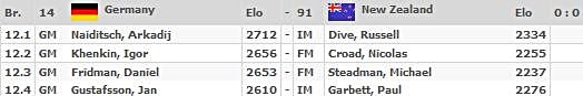 Die deutsche Delegation. Vorne von links nach rechts: Daniel Fridman, Elena Levushkina, Tatyana Melamed, Arkadij Naiditsch, Melanie Ohme, Marta Michna und Raj Tischbierek. Hinten von links nach rechts: Uwe Bönsch, Igor Khenkin, Georg Meier, Peter Heine-Nielsen und Jan Gustafsson. Peter Heine Nielsen ist natürlich kein Deutscher, sondern Däne, er begleitet die Mannschaft als Eröffnungstrainer. Weitere Mitglieder der deutschen Delegation sind Elisabeth Pähtz, die deutsche Nummer eins bei den Damen und Michael Prusikin, der die Damenmannschaft als Eröffnungstrainer betreut.