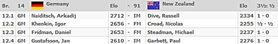 28.08.2012 - Mit einem ungefährdeten 3,5:0,5 gegen Neuseeland hat die deutsche Nationalmannschaft in Istanbul einen guten Start hingelegt. Während Arkadij Naiditsch, Daniel Fridman und Jan Gustafsson ihre Gegner sicher im Griff hatten, ließ Igor Khenkin seinen Gegenüber FM Nicolas Croad aus gewinnträchtiger Stellung ins Remis entwischen. Bei den Frauen war der Ausgang des Matches gegen die sehbehinderten Spieler der IBCA (International Braille Chess Association) lange unklar, womit wir auch gleich schon beim größten Problem der ersten Olympia-Runde sind. Zahlreiche Bretter konnten offenbar nicht (korrekt) übertragen werden, so auch die Partie von Marta Michna. So mussten die Fans lange damit leben, dass es 2:1 für Deutschland stand, nachdem Elena Levushkina und Melanie Ohme sicher gewonnen und Elisabeth Pähtz leider verloren hatte. Letztlich meldete die offizielle Turnierseite zur allgemeinen Erleichterung, dass Michna und damit auch das deutsche Frauenteam gewonnen hatte. Neben den nicht übertragenen Partien ist es ferner sehr ärgerlich, dass die offizielle Live-Seite eine Menge unglaublicher Ergebnisse meldete, die zumindest in der Summe schlicht nicht stimmen können bzw. mittlerweile schon korrigiert wurden. Einige überraschende und belegte Einzelergebnisse gibt es dennoch zu vermelden. So verlor Emil Sutovsky gegen IM Andrei Obodchuk vom Team IPCA (International Physically Disabled Chess Association) ebenso wie Loek van Wely gegen IM Tze-Meng Mok aus Malaysia.