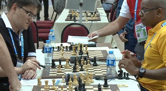 Langer Name und extrem cool - IM Jose Lisandro Munoz Santana von der Dominikanischen Republik versteckte seine Augen vor Alexander Grischuk