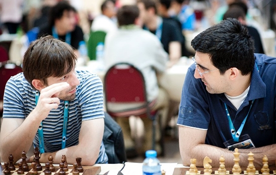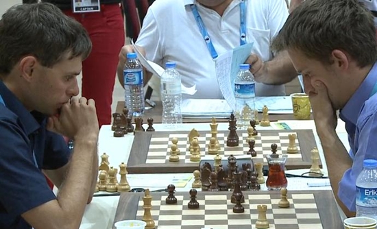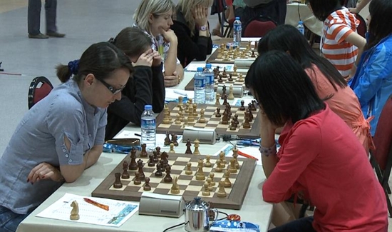 30.08.2012 - Das deutsche Team war gegen die Iraner favorisiert, doch mit dem glatten 4:0 übertrafen die amtierenden Mannschaft-Europameister ohne Spitzenbrett Arkadij Naiditsch sogar die Erwartungen. Igor Khenkin, Georg Meier, Daniel Fridman und Jan Gustafsson ließen ihren Gegnern nicht den Hauch einer Chance und liegen mit 6:0 Punkten weiterhin ausgezeichnet im Rennen. Hätte man der deutschen Auswahl der Frauen dagegen vorab ein 2:2 gegen Georgien angeboten, sie hätten es bestimmt gerne angenommen. Tatsächlich erreichten sie heute dieses Ergebnis, doch die Wahrheit ist, dass sie ganz klar einen Sieg auf den vier Brettern hatten. Marta Michna legte mit einem vollen Punkt vor, Tetyana Melamed steuerte ein sicheres Remis bei, und die beiden restlichen Stellungen versprachen noch zwei weitere Punkte. Während Elisabeth Pähtz am Spitzenbrett eine versteckte Mattkombination ausließ, verlor Melanie Ohme (Bild) zusehends die Kontrolle über ihre schöne Stellung. Letztlich musste sie aufgeben und Pähtz kam in ihrem 150. Einsatz für die Nationalmannschaft doch "nur" zu einem Remis. Dennoch, das ist trotz der ausgelassenen Chancen ein sehr gutes Ergebnis, und unsere Damen sollten sich daher am besten nur ganz, ganz kurz grämen. Bisher kann man jedenfalls festhalten, dass die Kapitäne und Eröffnungstrainer - Uwe Bönsch & Peter Heine-Nielsen bei den Männern und Raj Tischbierek & Michael Prusikin bei den Frauen - ihre Teams ausgezeichnet eingestellt haben!