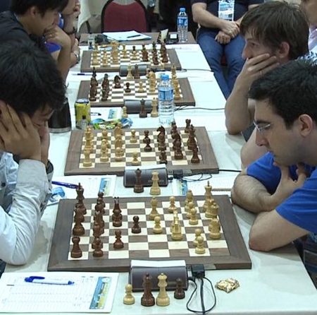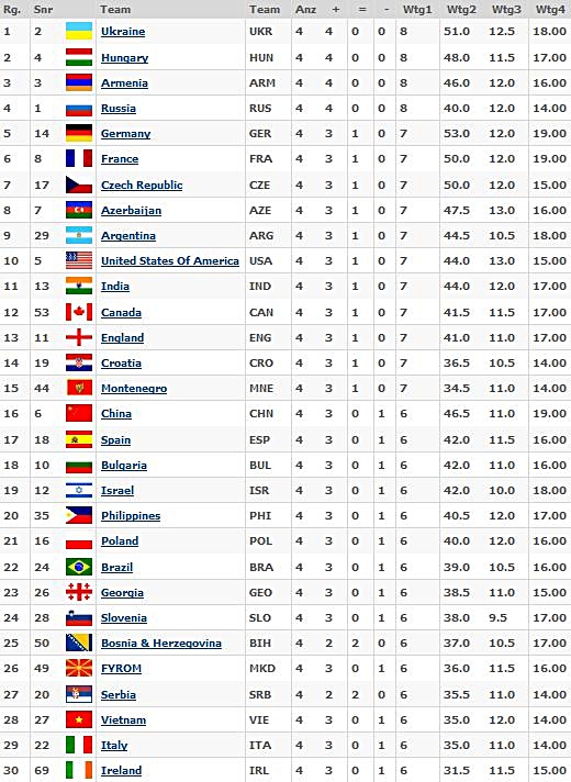 31.08.2012 - 2011 bei der Mannschafts-EM war Arkadij Naiditsch mit seinem Sieg der Matchwinner gegen Aserbaidschan, während seine Kollegen allesamt remisierten. Heute wäre es in der vierten Runde der 40. Schacholympiade beinahe genau umgekehrt gekommen. Doch Daniel Fridman spielte ganz groß auf. Er hatte zwar die ganze Partie über stets gut gestanden, doch der Gegner rettete sich in ein remislich wirkendes Endspiel mit Minusbauer aber eben den berüchtigten ungleichfarbigen Läufern. Doch der deutsche Meister erspähte noch eine letzte Gewinnidee, und sein Gegner konnte bei knapper Bedenkzeit keine Verteidigung finden und musste zur großen Freude der zahlreichen deutschen Kiebitze letztlich das Handtuch werfen. Georg Meier und Igor Khenkin steuerten die beiden Remisen zum verdienten 2:2 bei. In den Spitzenbegegnungen schlug Russland die Chinesen 3:1, USA gegen Indien endete 2:2 ebenso wie Frankreich - England. Armenien besiegte die Philippinen mit 2,5:1,5 und die Ukraine Polen mit 3:1. Weniger Glück hatten indes die deutschen Frauen, sie unterlagen China mit 1:3. Zwar bremste Elisabeth Pähtz am Spitzenbrett Weltmeisterin Hou Yifan per Dauerschach aus, doch ihre Kolleginnen konnten leider nicht alle mitziehen. Marta Michna gelang ein weiteres Remis, doch Tetyana Melamed und Elena Levushnika verloren. UPDATE: Losglück oder nicht, die deutschen Mannen treffen in der 5. Runde auf das nominell schwächere Team aus Montenegro. Auch die Frauen dürften sich gegen die schlagbaren Kubanerinnen zwei Mannschaftspunkte ausrechnen.