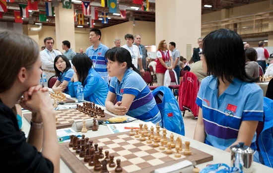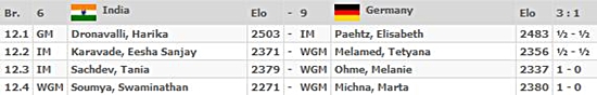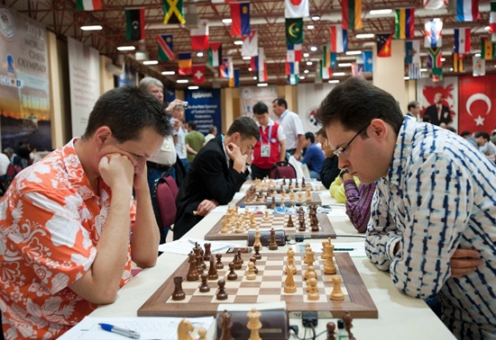 03.09.2012 - Im heutigen Spitzenduell der 40. Schacholympiade zwischen Russland und Armenien gab es keinen Sieger und damit auch keine (kleine) Vorentscheidung um Gold. Zwar legte Vladimir Kramnik gegen Levon Aronian aus russischer Sicht vor, doch Sergei Movsesian machte dies gegen Alexander Grischuk wieder wett. Die beiden anderen Partien endeten unentschieden. Da parallel Aserbaidschan gegen Kroatien mit 3:1 siegte, liegen nun drei Teams mit 11 Punkten gleichauf an der Spitze. Auch das deutsche Team ist im Open weiter ungeschlagen. Heute traf man auf die favorisierten US-Amerikaner und und trotzte diesen ein verdientes 2:2 ab, was zugleich bedeutet, dass man weiterhin in Tuchfühlung zu den Medaillenrängen ist. Die zweite Niederlage in Serie mussten hingegen die deutschen Frauen hinnehmen. Nominell war man den Inderinnen zwar nahezu ebenbürtig, doch auf den Brettern konnte man dies leider nicht bestätigen. Elisabeth Pähtz remisierte zunächst am Spitzenbrett, doch bald darauf musste Marta Michna aufgeben. Es folgte Tetyana Melamed mit einem weiteren Remis und zu schlechter Letzt musste Melanie Ohme ihre schlechte Stellung zum 1:3 Endstand aufgeben. Im Spitzenduell zwischen den Russinnen und den Chinesinnen gab es keinen Sieger. Die Niederlage von Tatiana Kosintseva am Spitzenbrett gegen Hou Yifan, glich die Schwester Nadezda gegen Zhao Xue wieder aus. UPDATE: Im Open kommt es an der Spitze zu den Duellen Aserbaidschan gegen Russland und China gegen Armenien. Die deutschen Mannen werden sich mit Moldawien messen, während die Frauen mit Syrien einen Gegner haben, den man schlichtweg schlagen MUSS.