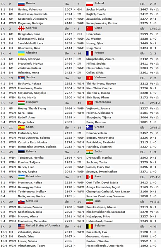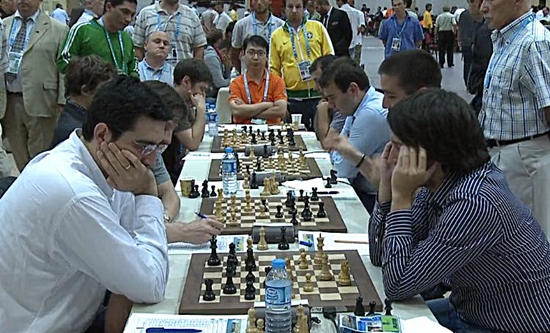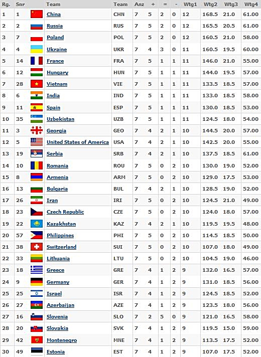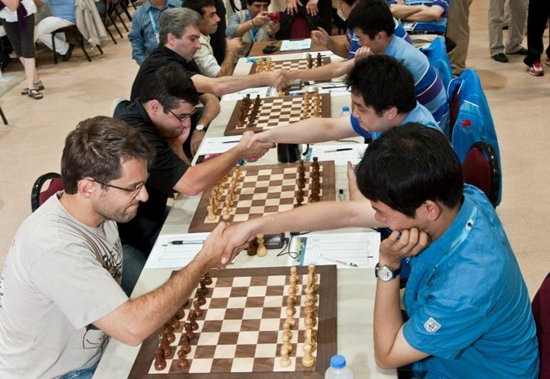 04.09.2012 - Alexander Grischuk ist der Matchwinner der 7. Runde bei der 40. Schacholympiade in Istanbul. Während seine russischen Kollegen allesamt gegen Aserbaidschan remisierten, konnte er gegen Eltaj Safarli siegen und so sein Team zur alleinigen Führung verhelfen. Parallel unterlag nämlich Armenien gegen China mit 1,5:2,5. Sehr frohe Kunde gibt es von den beiden deutschen Mannschaften zu vermelden. Im Open gaben die Mannen von Kapitän Uwe Bönsch Moldawien mit 2,5:1,5 das Nachsehen. Arkadij Naiditsch teilte mit Viktor Bologan den Punkt, und Georg Meier unterlag Dmitry Svetushkin, doch Jan Gustafsson schlug umgehend gegen Serghei Vedmediuc zurück, bevor Igor Khenkin gegen Viorel Iordachescu entscheidend vollstreckte. Die Frauen waren gegen Syrien haushoher Favorit und nutzten dies auch zu einem klaren 4:0. Mit einem blauen Auge kamen an der Tabellenspitze die Russinnen beim 2:2 gegen Polen davon. Immerhin zog China so per Sieg gegen Georgien nach Punkten wieder gleich. UPDATE: Die deutschen Männer treffen in der achten Runde auf die starken, aber nicht unbesiegbaren Ungarn. Die deutschen Frauen erhalten die Möglichkeit, es besser als die männlichen Kollegen zu machen, denn sie treffen auf Montenegro und sind erneut klare Favoritinnen.