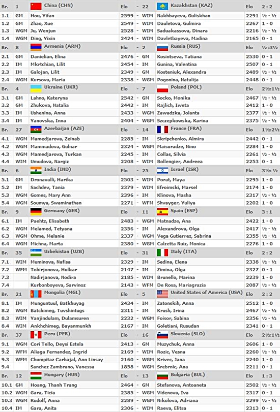 TopTurniere Olympia 2012 - China, Russland & Armenien führen Beide deutsche Teams siegen! Ruhetag am Samstag, letzte Runde am Sonntag bereits um 10:00 Uhr! UPDATE: Hammerlose für die Deutschen: Männer gegen Russland, Frauen gegen Ukraine