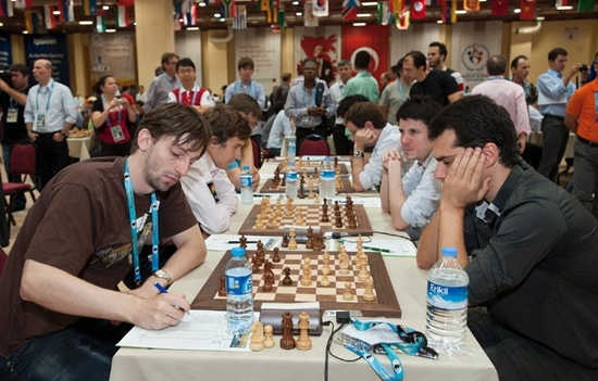 07.09.2012 - Mit jeweils 2,5:1,5 besiegten China und Russland in der zehnten Runde der 40. Schacholympiade die Teams aus Mittel- bzw. Südamerika. Bei den Chinesen sorgte Ding Liren gegen den US-Amerikaner Alexander Onischuk für den entscheidenden Punkt, bei den glücklichen Russen war es Sergey Karjakin, der den einzigen Sieg gegen den Argentinier Diego Flores verbuchen konnte. Ebenfalls an der Spitze liegen weiterhin die Armenier mit einem klaren 3:1 gegen die Niederlande. Levon Aronian schlug Anish Giri, und Vladimir Akopian tat es ihm gegen Ivan Sokolov gleich. Einen waschechten Kampfsieg schaffte die deutsche Auswahl gegen die Weißrussen. Nachdem Arkadij Naiditsch, Georg Meier und Daniel Fridman remisiert hatten, gewann Jan Gustafsson ein kompliziertes Springerendspiel. Damit ist der erhoffte Platz in den Top 10 ganz nah, aber möglicherweise noch nicht in trockenen Tüchern. Die deutschen Frauen gingen gegen die Spanierinnen beherzt zu Werke und siegten verdient mit 3:1. Elisabeth Pähtz und Marta Michna siegten, während Tatiana Melamed und Melanie Ohme jeweils einen Halben beisteuerten. In der Gesamtwertung ist damit auch für die Mädels eine Top 10-Platzierung möglich. Im Kampf um Gold wird es nochmals richtig spannend, denn die Chinesinnen kamen gegen Kasachstan nur zu einem 2:2 und mussten zusehen, wie die Russinnen mit einem klaren 3,5:0,5 gegen Armenien wieder gleichziehen konnten. Am Samstag ist der letzte Ruhetag in Istanbul, bevor am Sonntag um 10:00 Uhr unserer Zeit die finale Runde beginnt. Alle Ergebnisse, Tabellen und Paarungen der elften Runde folgen voraussichtlich gegen 21:15 Uhr. UPDATE: Tja, wer gut spielt, bekommt auch gute Gegner, und so müssen die deutschen Mannen in der Schlussrunde der Olympiade auch noch gegen die Nr. 1 der Setzliste Russland an die Bretter. Keineswegs einfacher wird es für die Frauen gegen die Ukraine werden. Die Hoffnung stirbt bekanntlich zuletzt, und so drücken wir so fest wie möglich die Daumen!
