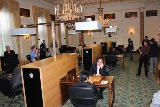 21.09.2012 - Heute war der Auftakt der jüngsten FIDE Grand Prix-Serie in London. Bis zum 04. Oktober werden sich zwölf absolute Könner des königlichen Spiels in einem Rundenturnier messen und um die 170.000 Euro Preisgeld sowie Grand Prix-Punkte ringen. Den besten Start erwischte der amtierende Vize-Weltmeister Boris Gelfand mit einem blitzsauberen Schwarzsieg im Sveshnikov gegen Hikaru Nakamura. Und da alle anderen Begegnungen - teils nach verbissenem Kampf - im Remishafen endeten, führt der Israeli alleine die Tabelle an. Die zweite Runde beginnt am Samstag um 15 Uhr unserer Zeit.