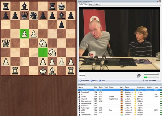 TV ChessBase kommentierte heute live die Londoner Partien - Moderator IM Oliver Reeh und Nachwuchsspieler (und fast IM) Rasmus Svane (15) analysierten hier die ungewöhnliche Eröffnung zwischen Wang und Topalov.