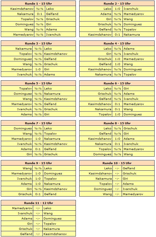 Gespielt wird ein elfrundiges Rundenturnier mit zwölf Spielern. Rundenstart ist täglich um 15:00 Uhr unserer Zeit, lediglich die letzte Runde beginnt bereits um 12:00 Uhr. Am 26. und 30. September wird jeweils ein Ruhetag eingelegt.