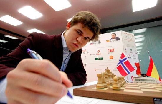 09.10.2012 - Mit seinem erneuten Sieg ist Magnus Carlsen beim Grand Slam Masters Final in Bilbao mit Fabiano Caruana gleichgezogen. Der Norweger besiegte Francisco Vallejo Pons, während Caruana gegen Sergey Karjakin remisierte. Selbiges taten auch Levon Aronian und Viswanathan Anand. Der Weltmeister hat damit bisher zwar noch keine Partie verloren, aber leider auch keine gewonnen. Am Mittwoch ist der letzte Ruhetag, bevor es ab Donnerstag in den Endspurt geht. Leider war auch diese Angabe (wie z. B. auch einige Paarungen) zunächst falsch auf der offiziellen Turnierseite nachzulesen.