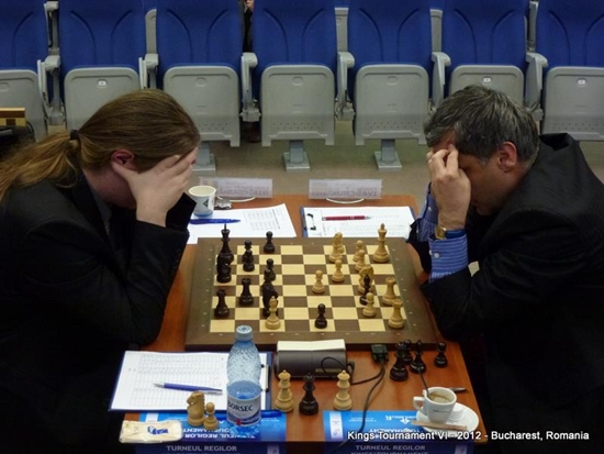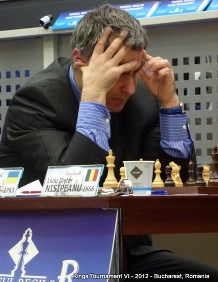 13.11.2012 - Eigentlich hätte die sechste Auflage des Kings Tournament schon im Sommer unter anderem mit Weltmeister Viswanathan Anand und Magnus Carlsen stattfinden sollen, aber finanzielle Probleme seitens des Veranstalters vereitelten dieses Vorhaben. Nun wurde das Turnier vom 07. bis 13. November in Bukarest und mit deutlich abgespecktem Teilnehmerfeld nachgeholt. Am Start waren mit Fabiano Caruana, Vassily Ivanchuk, Veselin Topalov und Liviu-Dieter Nisipeanu lediglich vier Spieler. Und wie es so oft bei so wenigen Spielern vorkommt, war die Remisquote mit 83,3 Prozent extrem hoch. Lediglich zwei der zwölf Partien fanden einen Sieger. Leidtragender war jeweils Nisipeanu, welcher zunächst in Runde 1 Ivanchuk und in Runde 5 Topalov unterlegen war. Somit sahen die Regeln einen Tiebreak um dem Turniersieg vor. Gespielt wurden zwei Schnellpartien (15'+3''). Die erste Partie gewann Ivanchuk mit Schwarz trotz Minusbauer durch Zeitüberschreitung und in der zweiten erreichte er ein ungefährdetes Weißremis, welches ihn zum Turniersieger machte.