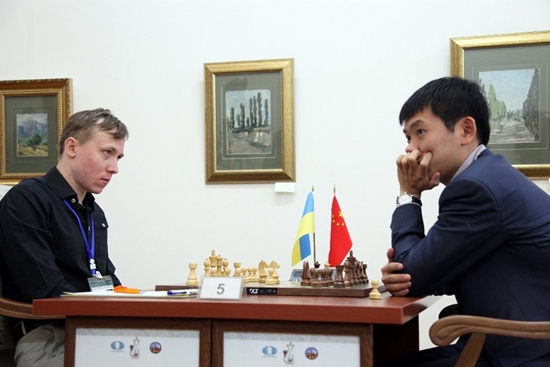 22.11.2012 - Unterschiedlicher hätten die beiden entschiedenen Partien der ersten Runde des FIDE Grand Prix in Taskent nicht sein können. Während Sergey Karjakin gegen Leinier Dominguez mit Schwarz im Mittelspiel Vorteil erlangte und diesem sukzessive zu einem klaren Sieg ausbaute, musste Alexander Morozevich in schwieriger Lage auf einen Aussetzer von Gata Kamsky hoffen, der dann auch tatsächlich folgte. Alle anderen Partien endeten ausgekämpft im Remishafen, so dass Karjakin und Morozevich nun gemeinsam führen. Die zweite Runde beginnt am Freitag um 11 Uhr.
