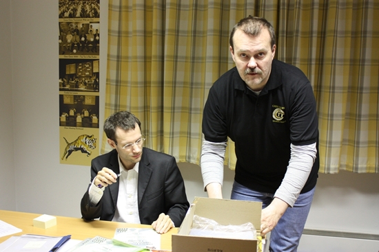 Thorsten Ostermeier und Hans-Dieter Post mitten in den Vorbereitungen für die Siegerehrung