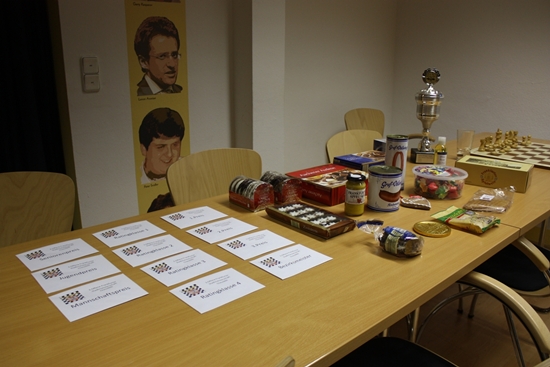 Für seine Partie gegen Johannes Kribben gewann FM Michael Stockmann den Preis für die "Partie des Turniers". Na ja, das Los wollte es so, obwohl viele Teilnehmer einen anderen Favoriten hatten. Und so machte auch Stocki gute Miene...