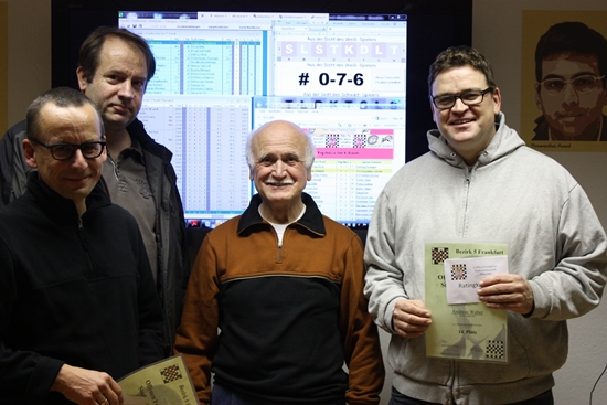 Die Sieger der Ratingklassen: Dr. Stephan Hartmann (4), Peter Wolff (1), Johann Kißler (3) & Andreas Weber (2)