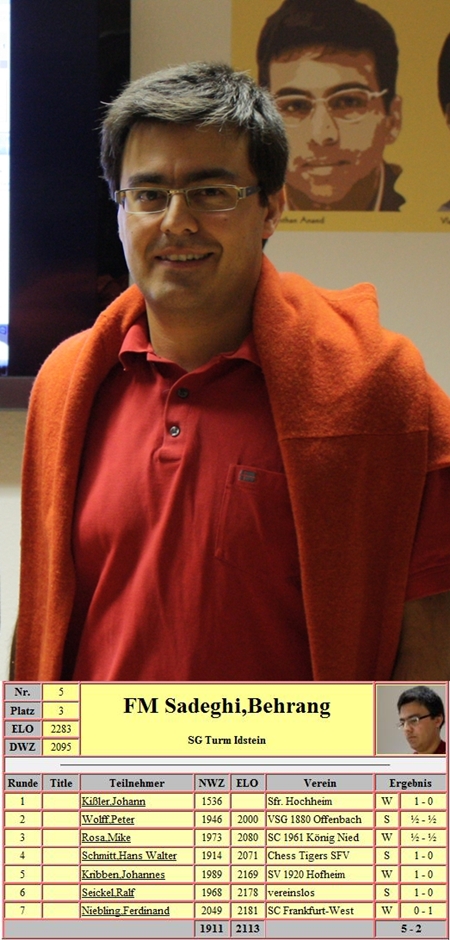 Nach 1.f4 bot FM Behrang Sadeghi Remis, doch Ferdinand Niebling zog ad hoc 1...d5