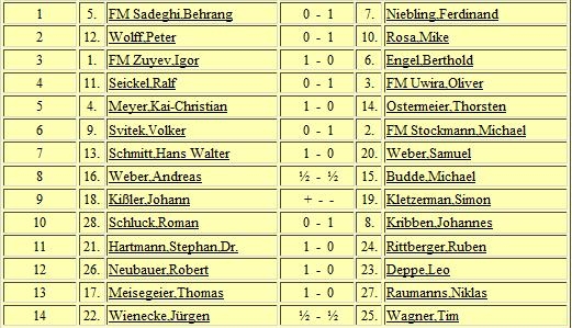 An Brett 2 musste Peter Wolff gegen Mike Rosa die einzige Niederlage quittieren, gewann aber immerhin noch die Ratinggruppe 1