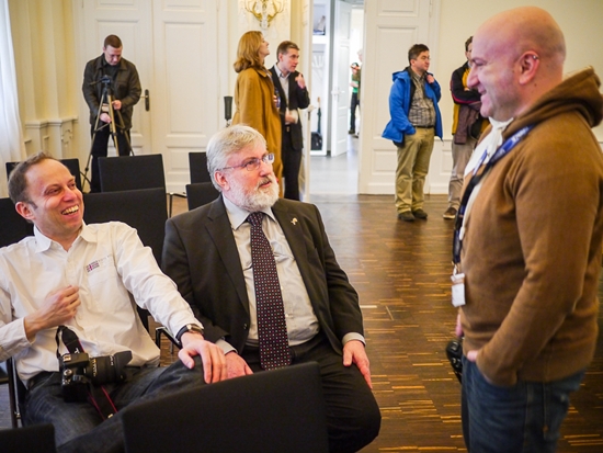 Launiger Smalltalk vor der Runde zwischen Hartmut Metz, Hans-Walter Schmitt und Georgios Souleidis