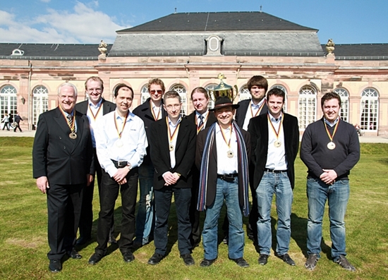09.04.2013 - Was macht man, wenn schon zu Beginn einer Saison feststeht, dass man Deutscher Meister wird? Richtig, man stellt einfach einen Rekord auf! So geschehen in der just beendeten Saison der Schachbundesliga. Ohne ernsthafte Konkurrenz ging die Star-Truppe der OSG Baden-Baden ins Rennen und gewann letztlich alle 15 Kämpfe, was gleichbedeutend mit dem achten Titel in Serie ist. Souveräner Vize-Meister ist mit 5 Punkten Rückstand, aber auch 4 Punkten Vorsprung auf den Drittplatzierten der SV Mülheim Nord. Davon nur träumen können SF Berlin, SV Griesheim, SC Forchheim und SK Norderstedt, denn diese vier Klubs müssen den Gang in Liga 2 antreten. Diese Angabe ist aber traditionell ohne Gewähr, denn auch dieses Mal steht zu befürchten, dass es wieder den einen oder anderen Aufstiegsverweigerer geben wird.