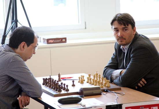 18.04.2013 - Zwei entschiedene Partien gibt es von der Auftaktrunde des FIDE Grand Prix-Turniers in Zug zu vermelden. Den Anfang machte Fabiano Caruana gegen Teimour Radjabov. Letzterer wird in den folgenden Runden beweisen müssen, dass er das schlechte Kandidatenturnier und eine Auftaktniederlage wegstecken kann. Den zweiten vollen Punkt des Tages fuhr Alexander Morozevich mit scheinbar leichter Hand gegen Rustam Kasimdzhanov ein. Viele Fans würden ihm gönnen, wenn er sich über die Grand Prix-Serie für das Kandidatenturnier 2014 qualifizieren würde. Dafür muss man Erster oder Zweiter in der Gesamtwertung werden. Alle weiteren Partien endeten mehr oder weniger spannend remis. Enttäuscht war Hikaru Nakamura, weil sich Sergey Karjakin in einem schlechten Endspiel bis zum 107. Zug perfekt zum Remis verteidigte. Die zweite Runde beginnt am Freitag um 14 Uhr.