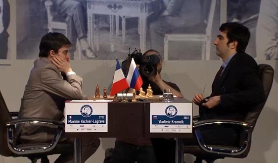 23.04.2013 - Wenn Michael Adams davon geträumt haben sollte, die Konkurrenz beim Alekhine Memorial würde erstmal zuschauen, wie er alleine führt, sah er sich bereits in der heutigen dritten Runde eines Besseren belehrt. Der Vize-Weltmeister persönlich nahm sich der Sache an. Nachdem Adams einen Bauern eingestellt hatte, waren die technischen Künste des Boris Gelfand gefragt. Bedächtig vergrößerte der Israeli seinen Vorteil und gewann letztlich. Tja, das wars dann auch schon in Sachen Einsen und Nullen vom heutigen Tag in Paris - alle anderen Partien endeten - mal von Vorsicht geprägt, mal ultra spannend - im Remishafen. Daher bleibt Adams trotz Niederlage vorne, muss sich den Platz an der Sonne aber eben mit Gelfand und auch noch Vachier-Lagrave teilen. Der glückliche Franzose sprang heute Kramnik in Verluststellung von der Schippe. Freuen wir uns auf Runde 4 am Mittwoch - wie gewohnt um 14 Uhr.