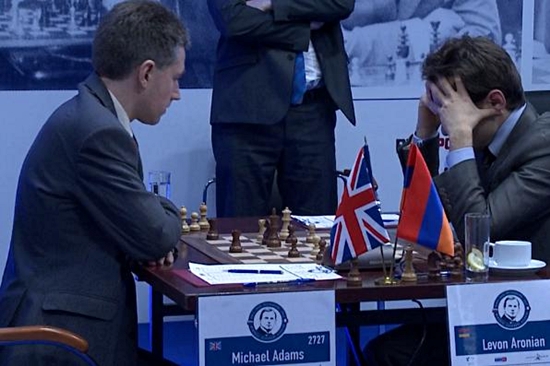28.04.2013 - Haben sich Ihr Autor und viele andere Schachnachrichtenseiten wirklich alle gleichzeitig geirrt, als sie die Rundenzeiten des Alekhine Memorials in St. Petersburg mit 14 Uhr Mitteleuropäischen Sommerzeit (MESZ) angaben. Nun, auf der Turnierseite steht (jetzt) die richtige Zeit - nämlich 12 Uhr (MESZ). Sorry, falls Sie dadurch heute den Start der sechsten Runde verpasst haben sollten! Selbige bot unter dem Strich nur zwei spielerische Highlights. Mag sein, dass die Partie zwischen Vladimir Kramnik und Viswanathan Anand einen nicht unbedingt vom Hocker riss, aber der Weltmeister brachte mit einem Damenopfer Würze ins Spiel. Letztlich musste Kramnik einsehen, dass er gegen die schwarze Festung nicht gewinnen konnte. Ein noch größerer Aufreger war die Partie zwischen Levon Aronian und Michael Adams. Mit einem (zu) riskanten Springeropfer brachte sich der Armenier in ernste Verlustgefahr und steigerte dies zu einer glatt verlorenen Stellung. Doch der Brite ließ sich doch noch ins Bockshorn jagen und gestattete eine Remiswendung. Und da auch in allen weiteren Duellen keine Seite entscheidende Vorteile erzielen konnte, hat sich an der "Schlusstabelle von Paris" nichts geändert - es führt weiterhin Maxime Vachier-Lagrave. Falls Sie uns weiterhin trauen: Die siebte Runde beginnt am Montag um 12 Uhr.