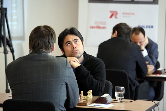 28.04.2013 - Mit einem Remis gegen Shakhriyar Mamedyarov hat Veselin Topalov in der neunten Runde seine alleinige Führung beim FIDE Grand Prix-Turnier in Zug erfolgreich verteidigt. Verfolger Ruslan Ponomariov leistete sich die erste Niederlage im laufenden Wettbewerb. Für seinen Gegner Teimour Radjabov war es im Gegenzug der erste Sieg. Zwei Runden vor dem Ende hat nun Fabiano Caruana die besten Chancen, Topalov noch abzufangen. Heute schlug der Italiener Gata Kamsky und morgen wird es zum Showdown gegen Topi kommen. Sollte einer gewinnen, kennen wir wahrscheinlich auch den Turniersieger. Nicht gänzlich ohne Chancen ist Hikaru Nakamura. Der Amerikaner schlug Alexander Morozevich, welcher damit zum dritten Mal in Serie verlor. Dabei hatte es so gut angefangen. Der Vollständigkeit halber: Die beiden noch unerwähnten Partien des heutigen Tages zwischen Anish Giri und Rustam Kasimdzhanov sowie Peter Leko und Sergey Karjakin endeten ohne Sieger, wobei besonders der Youngster aus den Niederlagen gehörig Glück hatte. Die zehnte Runde beginnt am Montag zur gewohnten Zeit um 14 Uhr.