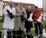 21.11.2015 - Das Chess Tigers Training Center unterstützt gerne soziale Projekte, besonders, wenn es um Schach geht. Das Klinikum Frankfurt-Höchst mit dem Chefarzt Dr. Harald Hake und seinem Förderkreis hatte die Idee auf dem Klinikgelände, „Schachspielen mit körperlicher Bewegung in Verbindung zu bringen“. Die gemeinsamen interessanten „Schachschlachten“ während der Pausen am Technischen Gymnasium der Heinrich-Kleyer-Schule in Frankfurt in den Jahren 1970-1974 sind gut 40-45 Jahre her. Harald Hake und Hans-Walter Schmitt machten da ihre Mittlere Reife und das Abitur, später studierten sie gemeinsam an der Goethe-Universität in Frankfurt und wohnen seit vielen Jahren in Bad Soden am schönen Taunus. Seit vielen Jahren betreut Dr. Harald Hake als Sportarzt auch die Volleyballer in Bad Soden, und Hans-Walter Schmitt betreibt nach seiner Siemens-Karriere seit 2010 das Chess Tigers Training Center mit ca. 270 Schülern und sieben Schachtrainern vor Ort in der „B9“, aber auch direkt an der Anna-Schmidt-Schule Frankfurt, an der Phorms-Schule Frankfurt & Steinbach, an der Geschwister-Scholl-Schule in Schwalbach und neuerdings auch an der Europäischen Schule in Bad Vilbel. Was liegt da näher für die Chess Tigers, auch die Begegnungsstätte Klinikum Höchst mit einem Freilandschach zu unterstützen, an dem sich Groß und Klein, Jung und Alt, Männer und Frauen, Mobile und Immobile, Kranke und Gesunde, Ausländer und Einheimische zur geistigen Begegnung an der frischen Luft den ganzen Tag treffen können. Es folgt die Presse-Information des Förderkreises des Klinikums Frankfurt Höchst. Zur Presse-Information...