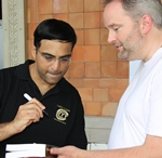 25.07.2014 - Freitags von 16:00 bis 18:00 Uhr trainieren die Jungs aus Königstein, Kronberg, Eschborn, Glashütten, Steinbach und Bad Soden im Chess Tigers Training Center im vorderen Raum der "B9" und werden von Trainer Stefan Schmieder auf Kurs gebracht für die nächste - ihre erste - Saison für die Kreisklasse B oder C in der Main-Taunus-Schachvereinigung. Im hinteren Raum bereitet sich unser Ehrenmitglied, Viswanathan Anand, der Weltmeister von 2007-2013 auf den Rückkampf gegen den amtierenden Weltmeister, Schnell- und Blitzschachweltmeister Magnus Carlsen mit seinem Team vor! Zu gerne hätten sie ihre Neugierde befriedigt und den "Großen" mal zugeschaut, wie die denn ihr Training betreiben, sie wollten 30 Minuten, vielleicht 5, aber wenigstens 2 Minuten zuschauen und dabei ein Autogramm ergattern. Doch vor 14 Tagen wurden sie vom Hausherrn Hans-Walter Schmitt überrascht mit der Bemerkung: "Ich habe einen viel besseren Plan, ihr könnt gegen ihn spielen!" Aufgeregtes Erstaunen und wo? Beim Simultan in Baden-Baden in der Trinkhalle und gegen viele andere Großmeister. Glaube ich nicht, gibts doch gar nicht, ein Wunder, cool, irre, geil, waren so die Kommentare. und viele neue Bilder ... Homepage Schach Magazin 64 Homepage OSG Baden-Baden