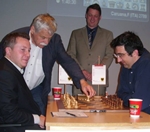 07.11.2014 - Um 17:00 Uhr war die Pressekonferenz mit beiden Spielern und allen Offiziellen angesetzt, danach die offizielle Eröffnungsfeier mit der Auslosung der Farben und danach folgte der gemütliche Teil beim gepflegten Essen und Trinken. In der Pressekonferenz nannten die Spieler artig ihre Sekundanten, wobei der routinierte Inder Viswanathan Anand die Polen Radoslaw Wojtaszek (Elo 2744) und Grzegorz Gajewsky (Elo 2643) und seinen Landsmann Krishnan Sasikiran (Elo 2682) bekannt gab. Weltmeister Magnus Carlsen gab sich offener als in Chennei letztes Jahr erlaubte sich aber einen kleine Quizantwort: der Däne und der Hammer! Alle Insider wussten sofort Bescheid, aber die Nachfrage kam prompt. Er meinte den Dänen Peter Heine Nielsen (Elo 2654) und seinen norwegischen Landsmann Jon Ludvig Hammer (Elo 2635). Damit war dieses konkrete Thema schon einmal erledigt und die Fragen konnten gestellt werden, wie immer belangloses Zeug, ohne wirklich was Neues zu erfahren. und ein paar Bilder von der Eröffnung ...